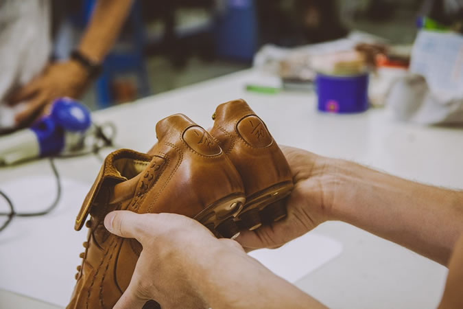 Inspirados no design tradicional das décadas de 60 e 70 as chuteiras foram confeccionadas à mão por artesãos da Itália.